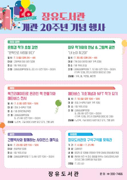 | ▲ 장유도서관 개관 20주년 기념행사 목록 [김해시 제공. 재판매 및 DB 금지] |