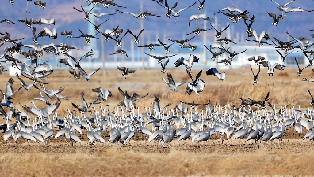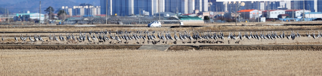 (창원=연합뉴스) 겨울 진객 재두루미가 설 연휴 기간 한파를 피해 대거 경남으로 이동한 것으로 25일 확인됐다.