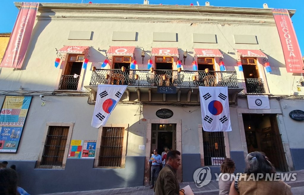 | ▲ '주빈국' 한국의 집 태극기와 청사초롱 (과나후아토=연합뉴스) 이재림 특파원 = 13일(현지시간) 멕시코 과나후아토에서 열린 세르반티노 축제에서 한국의 다양한 문화를 소개하는 한국의 집에 태극기와 청사초롱이 걸려 있다. 2022.10.14 walden@yna.co.kr |