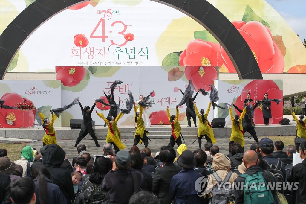 | ▲ 4·3 희생자 추모 공연 (제주=연합뉴스) 3일 오전 제주시 봉개동 4·3 평화공원에서 열린 4·3 희생자 추념식에서 추모공연이 진행되고 있다. 2023.4.3 [제주도사진기자회] jihopark@yna.co.kr |