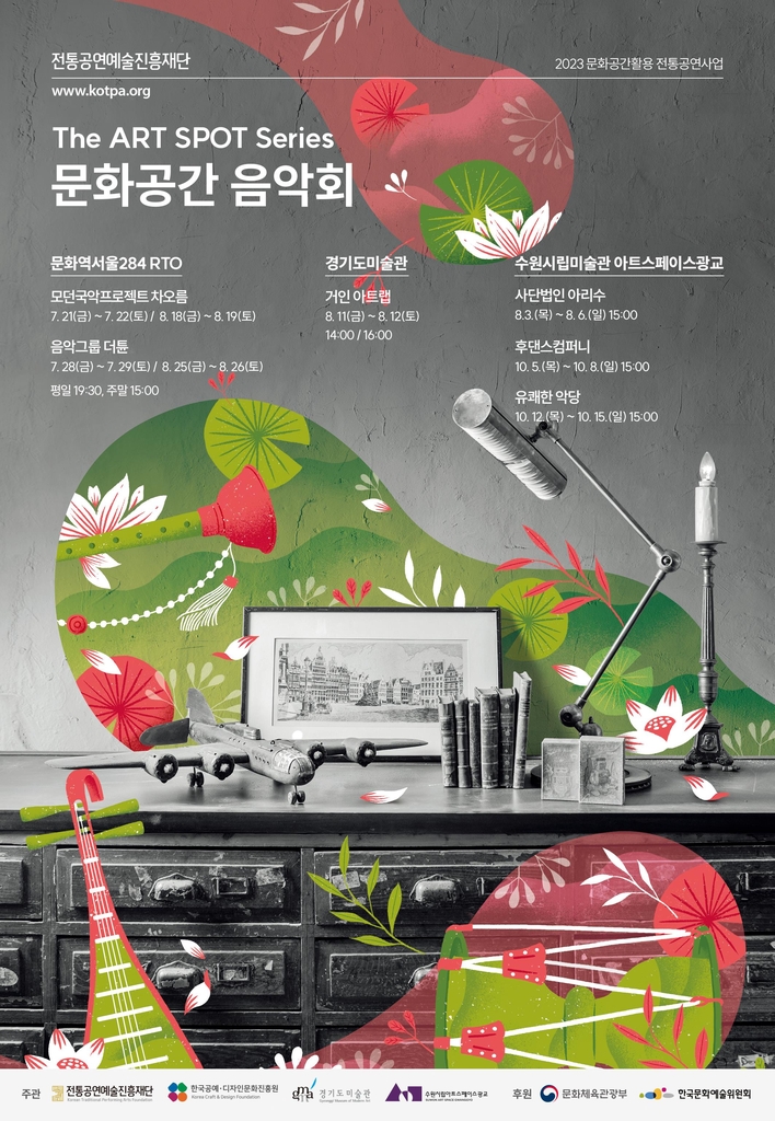 디 아트 스팟 시리즈는 다양한 공간에서 전시, 연극 등 타 장르와의 협업을 통해 국악에 새로운 감각을 더한 공연을 선보이며 전통예술의 매력을 드러내는 프로젝트다.