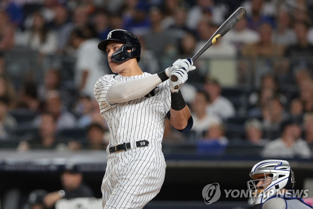 저지는 24일(한국시간) 미국 뉴욕주 뉴욕 양키스타디움에서 열린 2022 MLB 뉴욕 메츠와 홈 경기에서 0-0으로 맞선 4회 선제 솔로 아치를 그렸다.