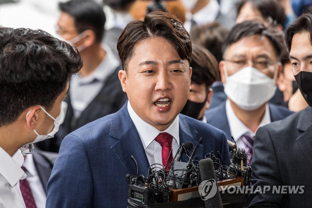 | ▲ Lee Jun-seok (C), former leader of the ruling People Power Party, speaks to reporters after arriving at the Seoul Southern District Court on Sept. 14, 2022, to attend a hearing to review an injunction filed by him in a bid to block the revisions to party rules adopted Sept. 5 by the party's national committee that specify what circumstances qualify as an emergency situation. Through the injunction, Lee seeks to suspend the party's new emergency leadership committee led by deputy parliamentary speaker and five-term lawmaker Chung Jin-suk. (Pool photo) (Yonhap) |