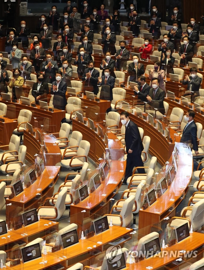 "In order to overcome the grave economic and security situation, there can be no separation between the ruling and opposition parties," Yoon said in his address. "We desperately need the cooperation of the National Assembly."