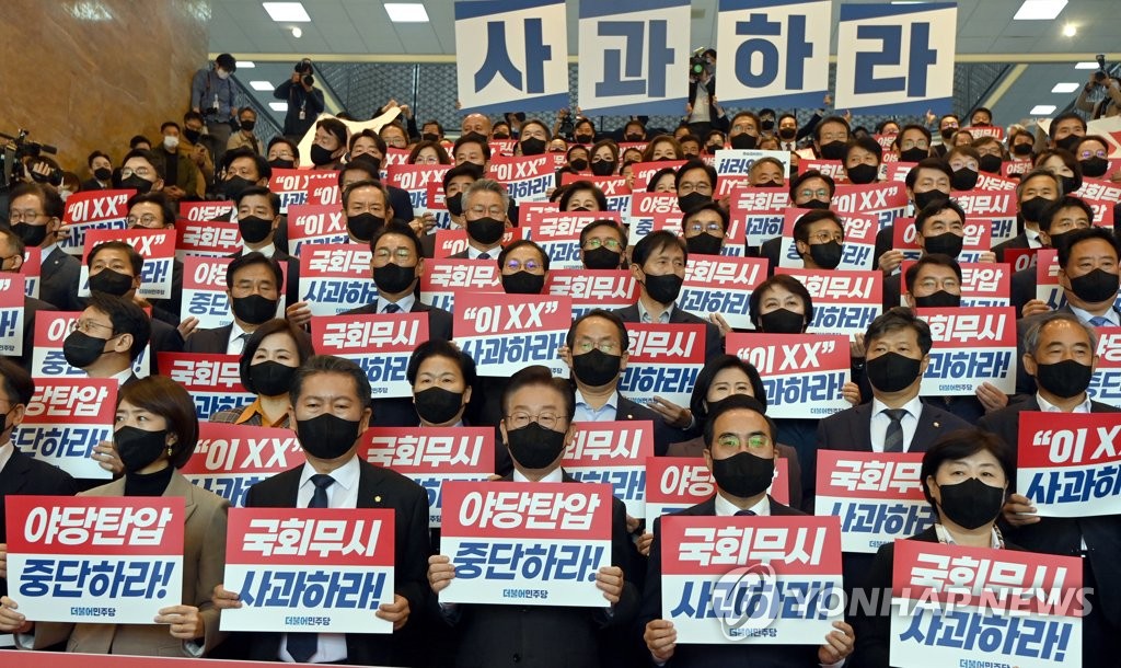 The party had also said Yoon should apologize for suppressing the opposition through the prosecution's investigation, which it fears is zeroing in on Lee.