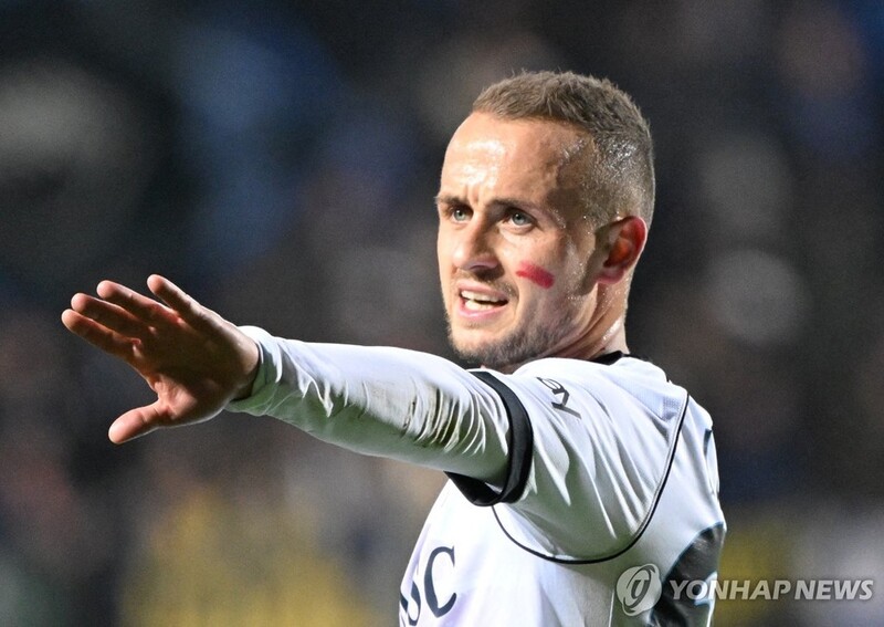 | ▲ AC밀란 미드필더 톰마소 포메가의 뺨에 그려진 붉은 마크 [AP=연합뉴스] |