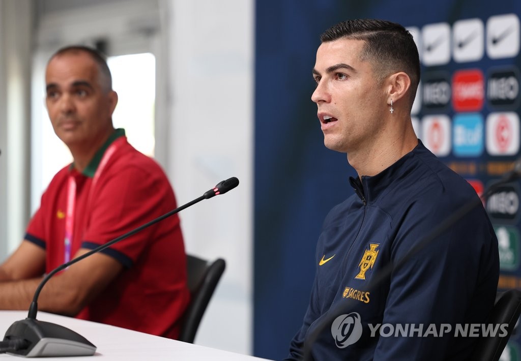 | ▲ 취재진 질문에 답하는 호날두 (도하=연합뉴스) 임헌정 기자 = 2022 카타르 월드컵 포르투갈 대표팀의 크리스티아누 호날두가 21일 오전(현지시간) 카타르 도하 외곽의 알샤하니야 SC 훈련장에서 훈련에 앞서 취재진 질문에 답하고 있다. 2022.11.21 kane@yna.co.kr |