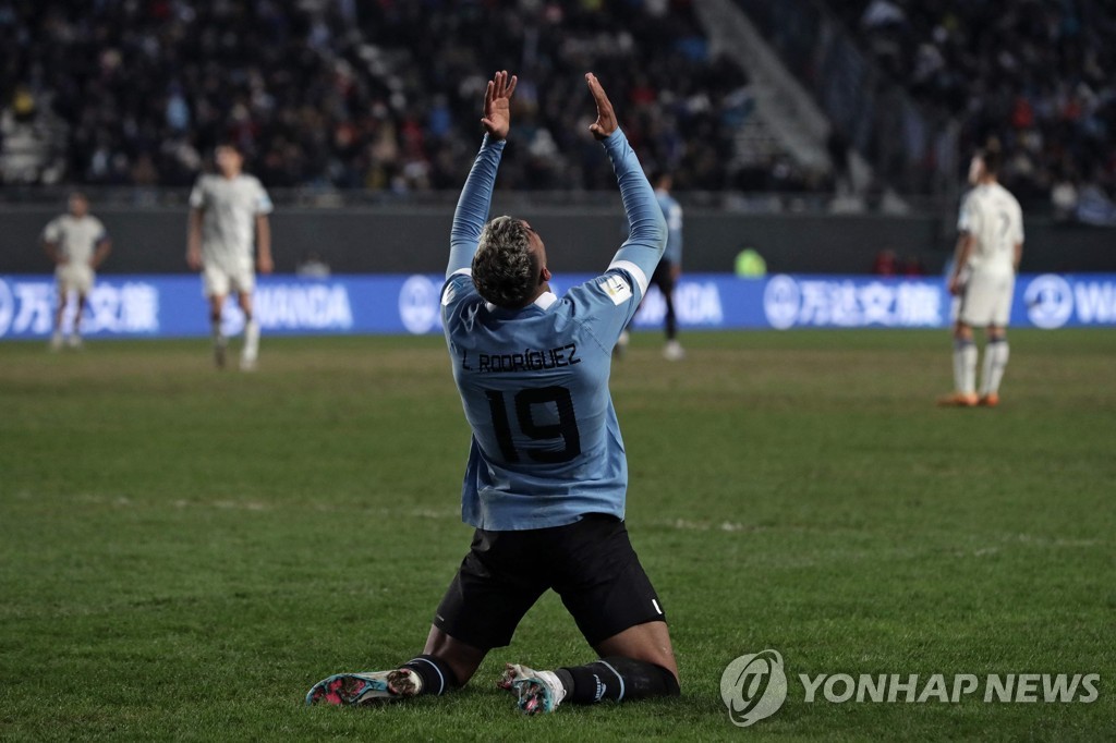 | ▲ 결승골을 넣고 환호하는 우루과이의 루시아노 로드리게스 [AFP=연합뉴스] |