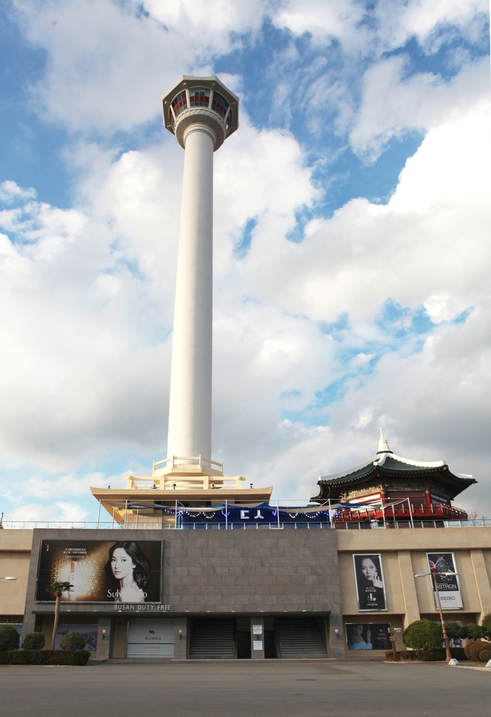 (부산=연합뉴스) 신정훈 기자 = 부산 대표 '인증 샷' 성지 중 한 곳인 용두산공원 부산타워가 '다이아몬드 타워'라는 새 이름으로 다시 태어났다.