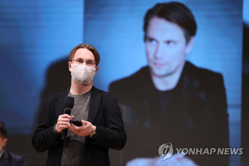 | ▲ 피에타리 잉키넨 KBS교향악단 신임 음악감독 취임 기자회견 (서울=연합뉴스) 류효림 기자 = 피에타리 잉키넨 KBS교향악단 신임 음악감독이 26일 서울 여의도 KBS홀에서 열린 KBS교향악단 제9대 음악감독 취임 기자회견에서 인사말을 하고 있다. 2022.1.26 ryousanta@yna.co.kr |