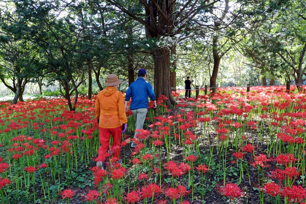 정읍시 관계자는 "내장산수목원 꽃무릇 군락지에는 산책로가 조성돼 청명한 날씨에 나들이하기 제격인 장소"라고 소개했다.