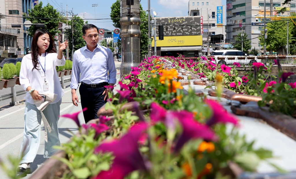 ▲ 대동교 꽃다리 점검하는 박희조 대전 동구청장 [대전 동구 제공. 재판매 및 DB 금지]