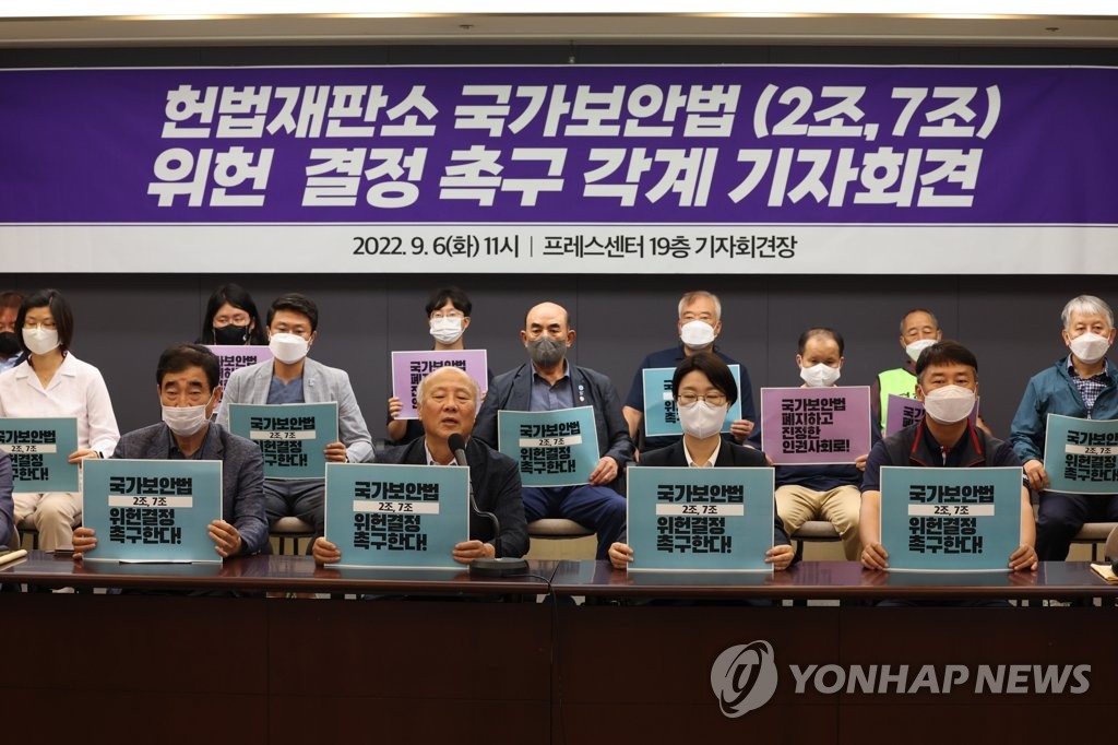 | ▲ Activists hold a press conference in Seoul, calling on the Constitutional Court to rule the National Security Act unconstitutional, in this file photo taken Sept. 6, 2022. (Yonhap) |