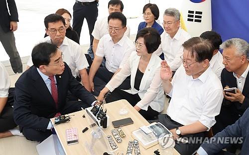 Following the controversy, Tae made a brief visit to the site where DP leader, Rep. Lee Jae-myung, has been on an indefinite hunger strike against President Yoon Suk Yeol's government.