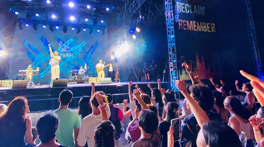 '아리랑'을 록음악으로 편곡한 버전을 선보인 안녕바다가 히트곡 '별빛이 내린다'를 부르자 청중은 환호하며 일제히 휴대전화를 꺼내들었다.