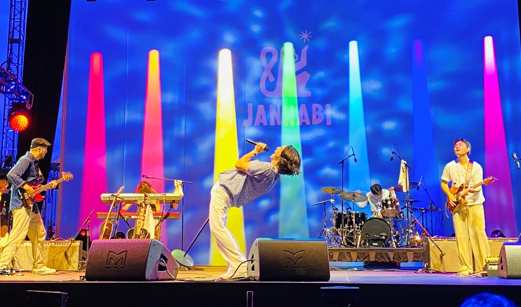 | ▲ 뉴요커들 앞에서 열창하는 '잔나비' (뉴욕=연합뉴스) 강건택 특파원 = 27일(현지시간) 밤 미국 뉴욕시 링컨센터에서 열린 'K-인디 뮤직 나이트' 무대에서 열창하는 밴드 '잔나비'. 2022.7.27. firstcircle@yna.co.kr. |