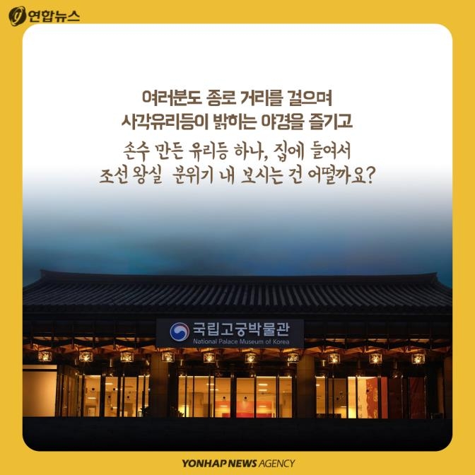 여러분도 국립고궁박물관과 경복궁을 거닐며 사각유리등이 밝히는 야경을 즐기고 유리등 하나, 집에 들여 조선 왕실 분위기 내 보시는 건 어떨까요?
