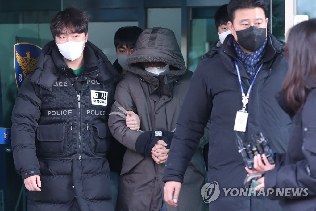 GOYANG, South Korea, Jan. 4 (Yonhap) -- A 31-year-old man accused of killing a taxi driver and a live-in girlfriend said Wednesday he is sorry for the murders as he was sent to the prosecution for further investigation and potential indictment.