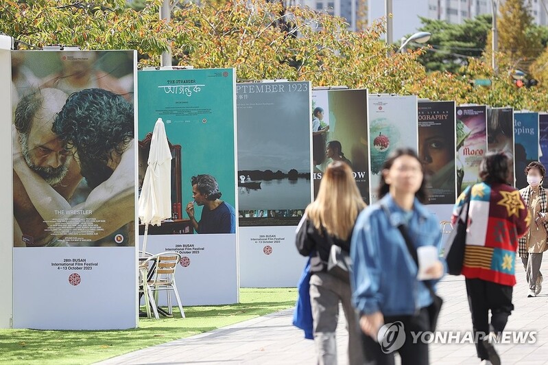 | ▲ 여유롭게 즐기는 부산국제영화제 (부산=연합뉴스) 강민지 기자 = 제28회 부산국제영화제(BIFF)가 막바지로 향하고 있는 11일 오후 부산 해운대구 영화의전당에 관객들이 오가고 있다. 2023.10.11 mjkang@yna.co.kr |