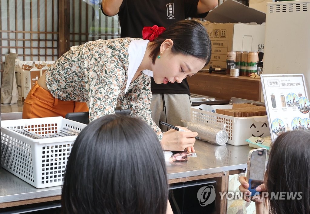 | ▲ 사인하는 고민시 (서울=연합뉴스) 이재희 기자 = 배우 고민시가 10일 오전 서울 종로구 청계광장 인근에서 열린 영화 '밀수' 홍보 커피차 이벤트에서 참여 시민에게 사인을 해주고 있다. 2023.7.10 scape@yna.co.kr |