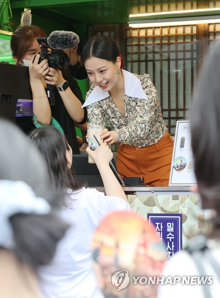 | ▲ 커피차 이벤트 하는 고민시 (서울=연합뉴스) 이재희 기자 = 배우 고민시가 10일 오전 서울 종로구 청계광장 인근에서 열린 영화 '밀수' 홍보 커피차 이벤트에서 시민들에게 사진을 찍어주고 있다. 2023.7.10 scape@yna.co.kr |