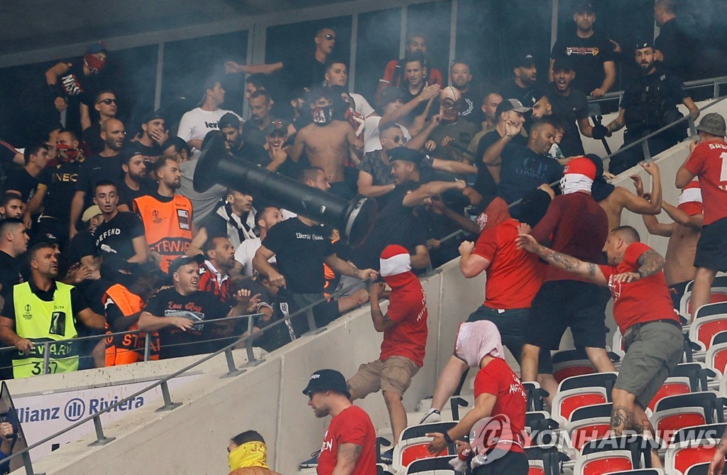 | ▲ 충돌하는 니스-쾰른 팬들 [로이터=연합뉴스] |