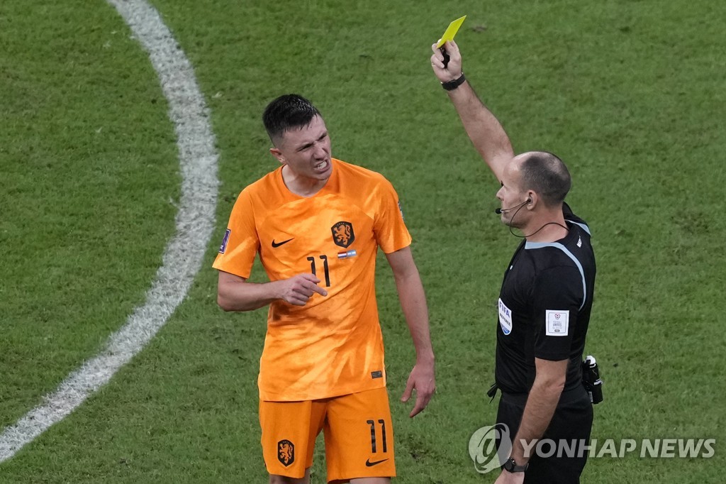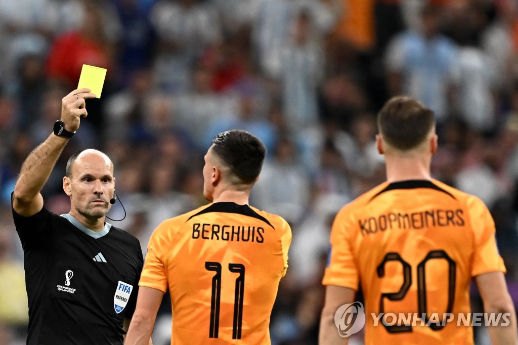 (서울=연합뉴스) 이의진 기자 = 아르헨티나와 네덜란드의 2022 국제축구연맹(FIFA) 카타르 월드컵 8강전에서 옐로카드가 무려 18장이 나와 대회 한 경기 최다 기록을 깼다.