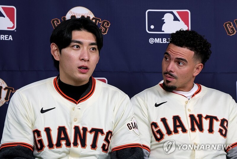 | ▲ 기자회견 하는 이정후 (서울=연합뉴스) 임화영 기자 = 미국 프로야구 메이저리그(MLB) 샌프란시스코 자이언츠 이정후가 6일 서울 종로구 누하동에서 기자회견을 하고 있다. 오른쪽은 윌리 아다메스. 2026.1.6 [공동취재] hwayoung7@yna.co.kr |