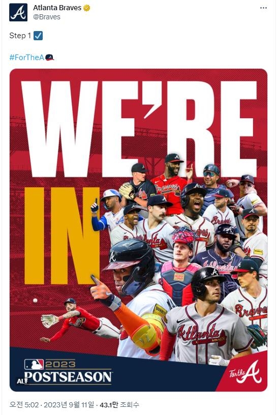 ▲ 포스트시즌 진출 알린 애틀랜타 구단 SNS 계정 [애틀랜타 브레이브스 X계정 캡처. 재판매 및 DB 금지]