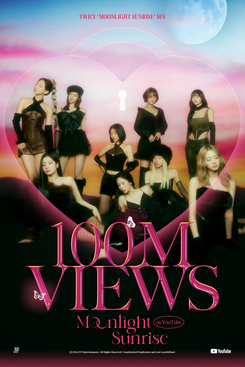 (서울=연합뉴스) 임지우 기자 = ▲ 트와이스, 23번째 1억뷰 뮤직비디오 = 그룹 트와이스의 '문라이트 선라이즈'(MOONLIGHT SUNRISE) 뮤직비디오가 지난 15일 유튜브 조회 수 1억 건을 넘어섰다고 소속사 JYP엔터테인먼트가 16일 밝혔다.