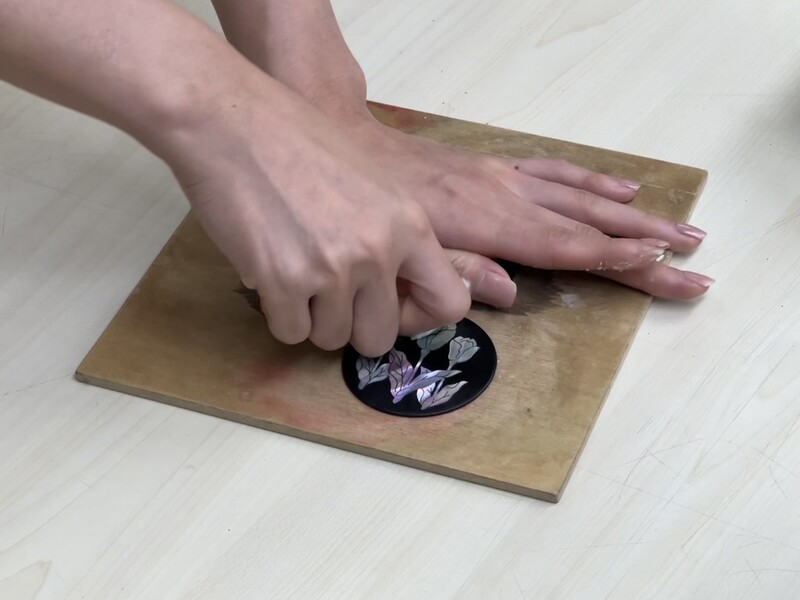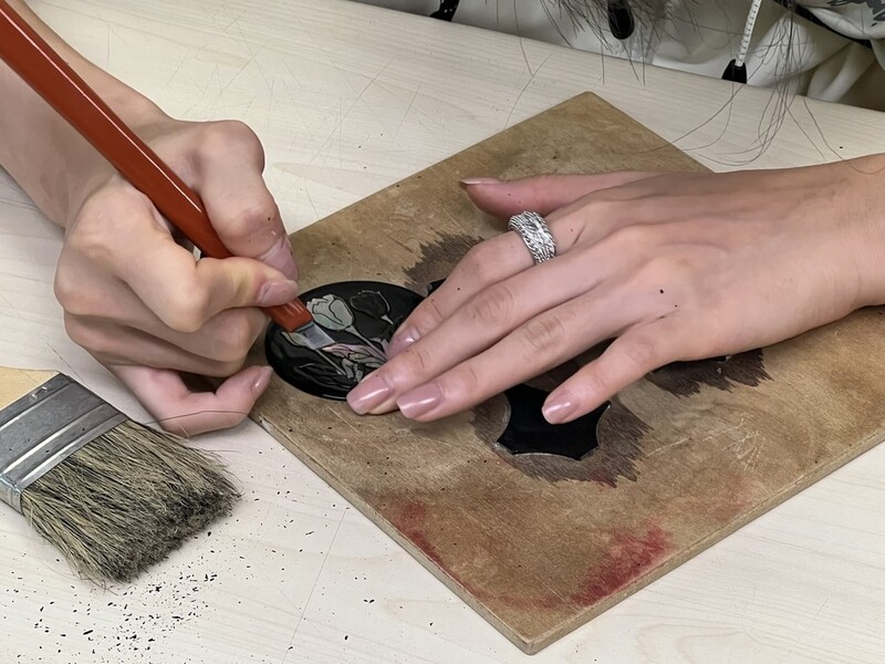 수강생들은 연마제와 광택제를 헝겊에 묻혀 나전의 표면을 닦아냈다.