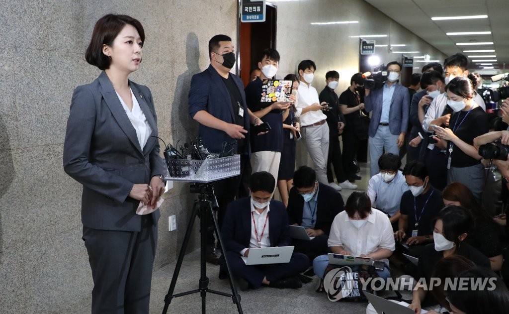 | ▲ Rep. Bae Hyun-jin of the ruling People Power Party announces she is quitting the party's supreme council at the National Assembly in western Seoul on July 29, 2022. (Pool photo) (Yonhap) |