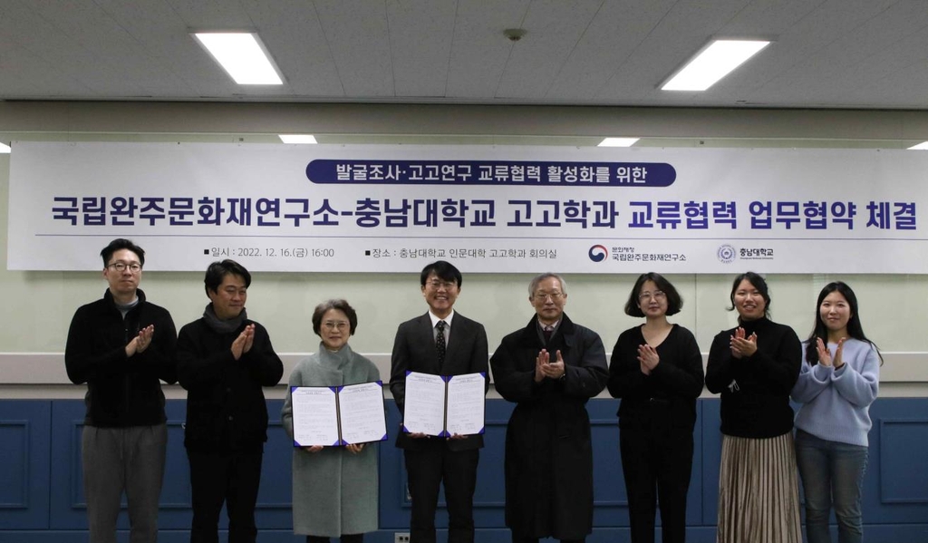 ▲ 국립완주문화재연구소, 충남대와 업무협약 = 국립완주문화재연구소는 충남대 고고학과와 문화재 분야 현장 교육 활성화 등을 위한 업무협약을 맺었다고 19일 밝혔다.