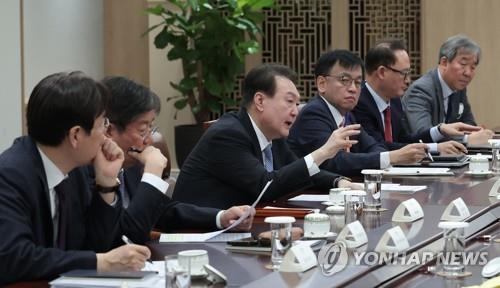 | ▲ This undated file photo shows President Yoon Suk Yeol (3rd from L) during a meeting with his aides. (Yonhap) |