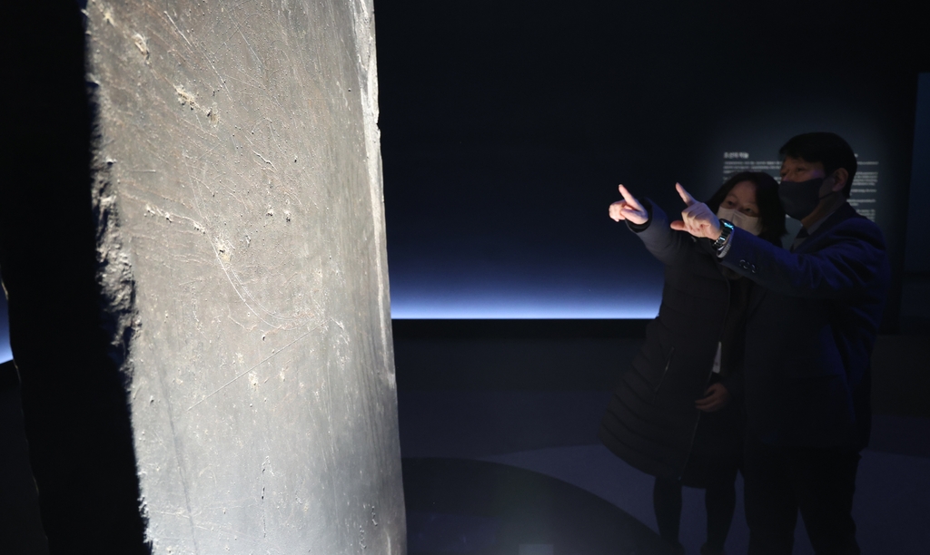 | ▲ (서울=연합뉴스) 한상균 기자 = 26일 새로 단장한 국립고궁박물관 '과학문화'실에서 국보 '천상열차분야지도각석'(天象列次分野之圖刻石)을 소개하고 있다. 일반 공개는 27일부터다. 2022.12.26 |