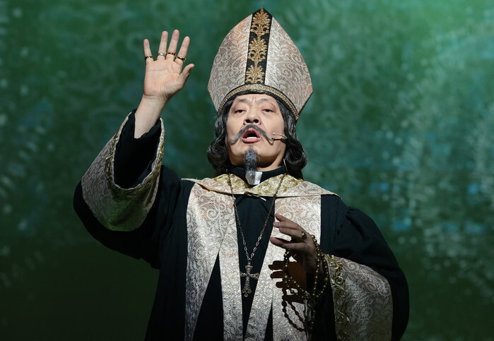 South Korean actor Kim Hyung-mook, who stars in the musical "Bloody Love," performs during a publicity event in Seoul on Dec. 12, 2024. The musical runs from Dec. 7 to Feb. 16. (Yonhap)