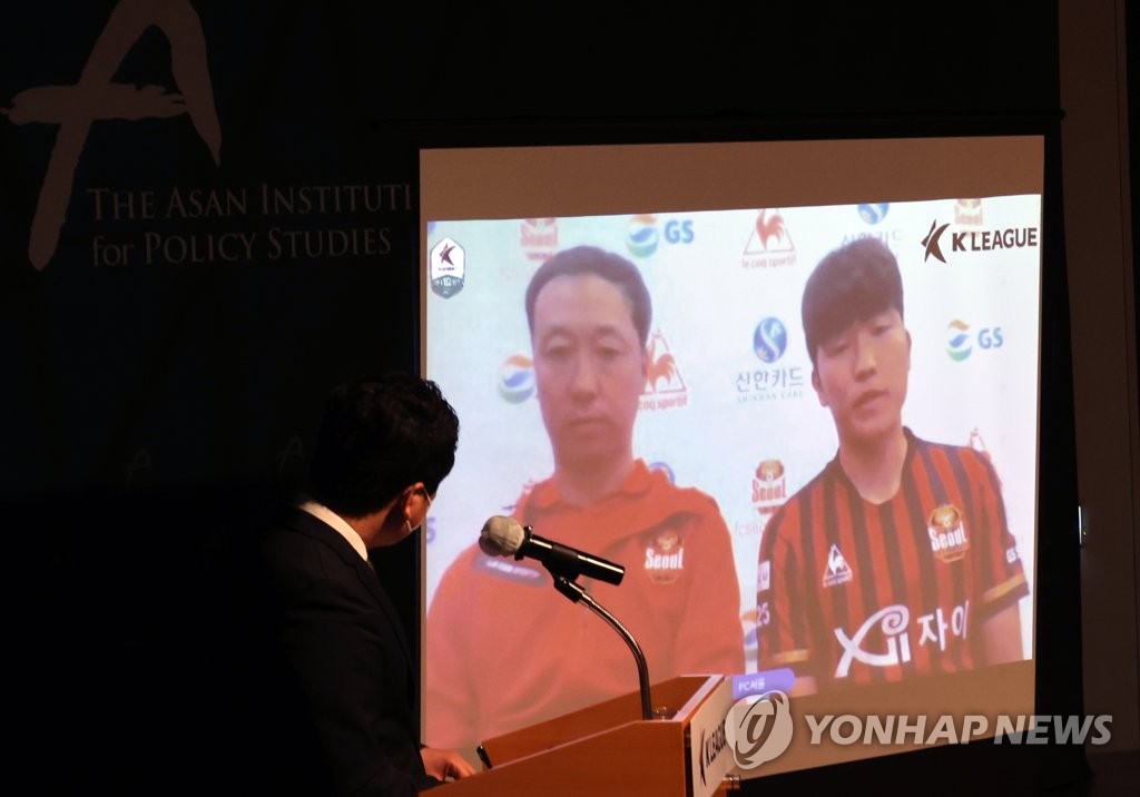 | ▲ FC Seoul head coach Park Jin-sub (L) and forward Na Sang-ho attend a press conferece in Seoul on March 18, 2021, ahead of the "Super Match" derby against Suwon Samsung Bluewings in the K League 1. (Yonhap) |