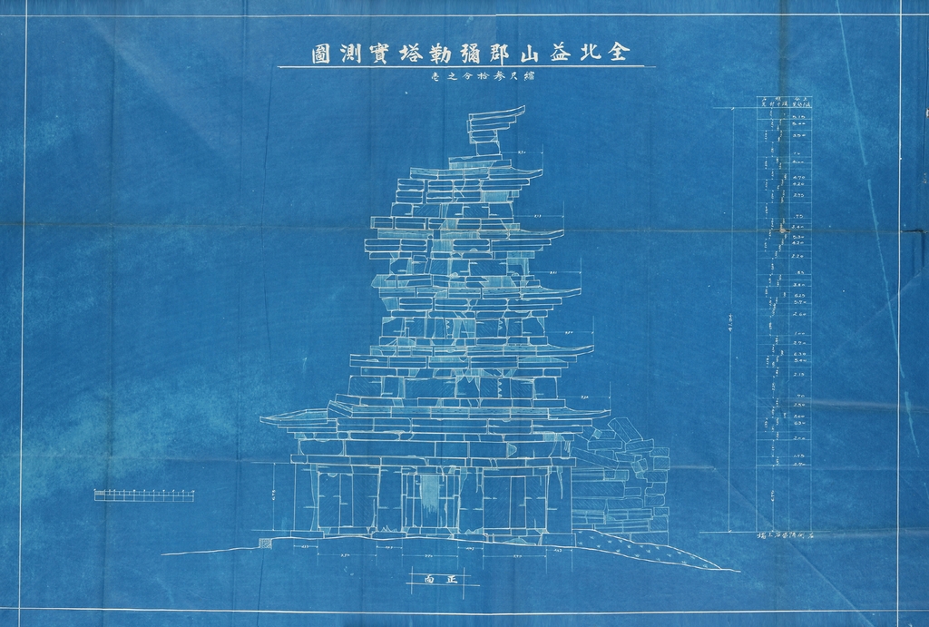 | ▲ 미륵사지 석탑 실측도 청사진(1915년) [국립익산박물관 제공. 재판매 및 DB 금지] |