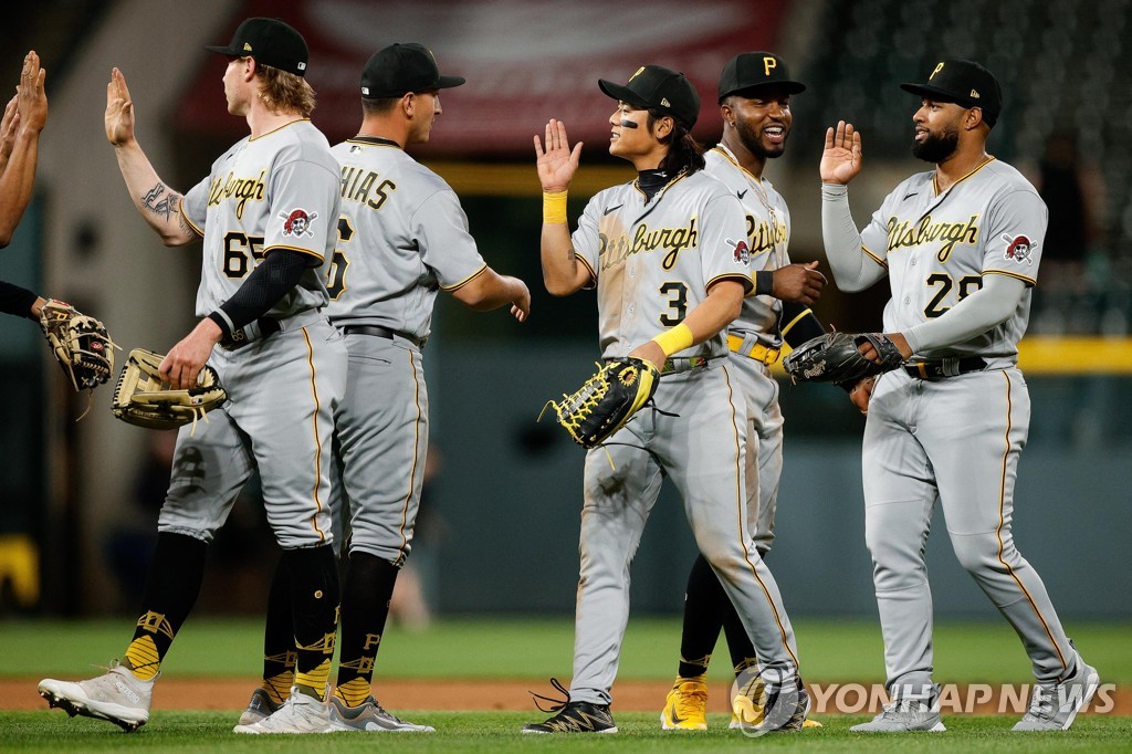 | ▲ 동료들과 승리를 축하하는 배지환(가운데) [USA TODAY/로이터=연합뉴스] |