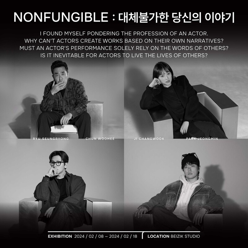 배우 류덕환 측은 내달 8일부터 18일까지 성수동 베이직스튜디오에서 에틱(ETIK)의 첫 전시 '논펀저블(NONFUNGIBLE): 대체불가한 당신의 이야기'를 개최한다고 18일 밝혔다.