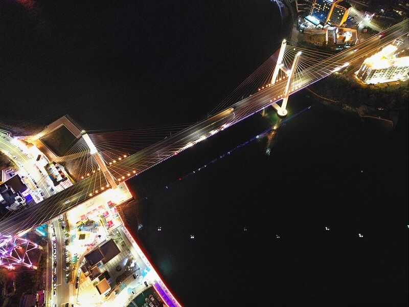 자산공원과 돌산공원을 이은 해상케이블카, 거북선대교와 돌산대교를 밝힌 야간 조명이 화려했다.