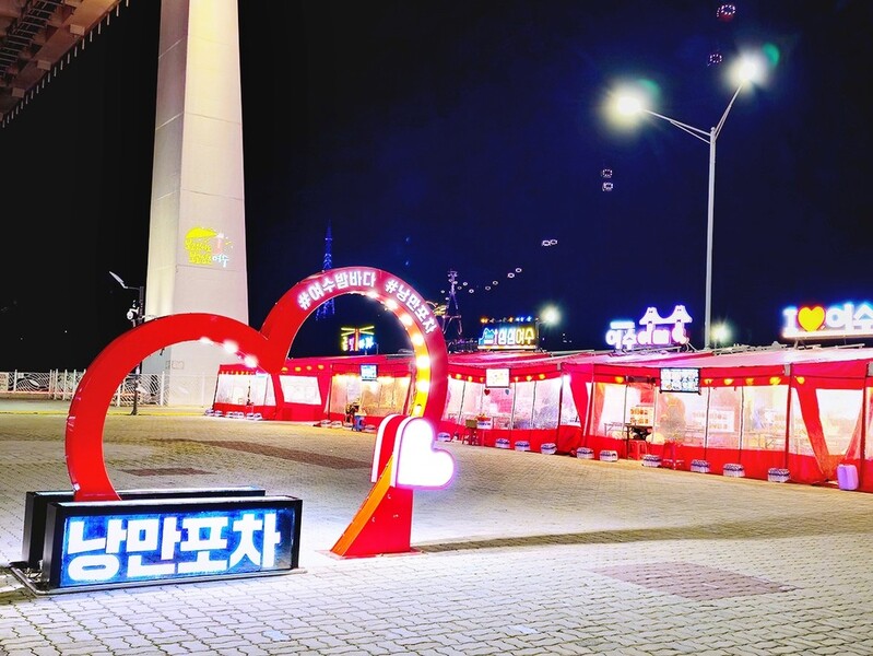 거북선대교 아래 여수낭만포차 거리에는 주말이 아닌 평일 저녁에도 시민과 외지 관광객들로 붐볐다.