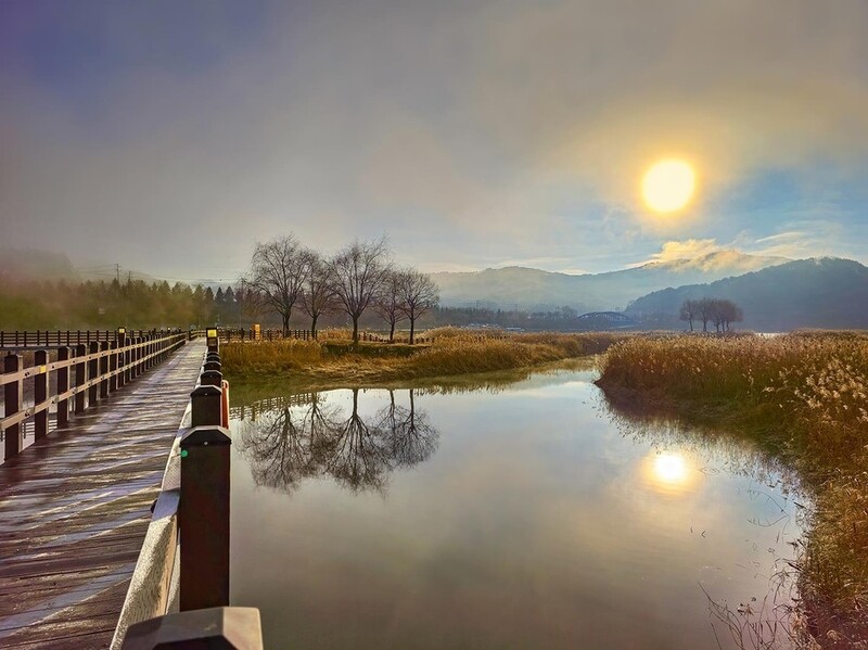 ▲ 파로호 습지에서 바라본 안개 일출 [사진/백승렬 기자]