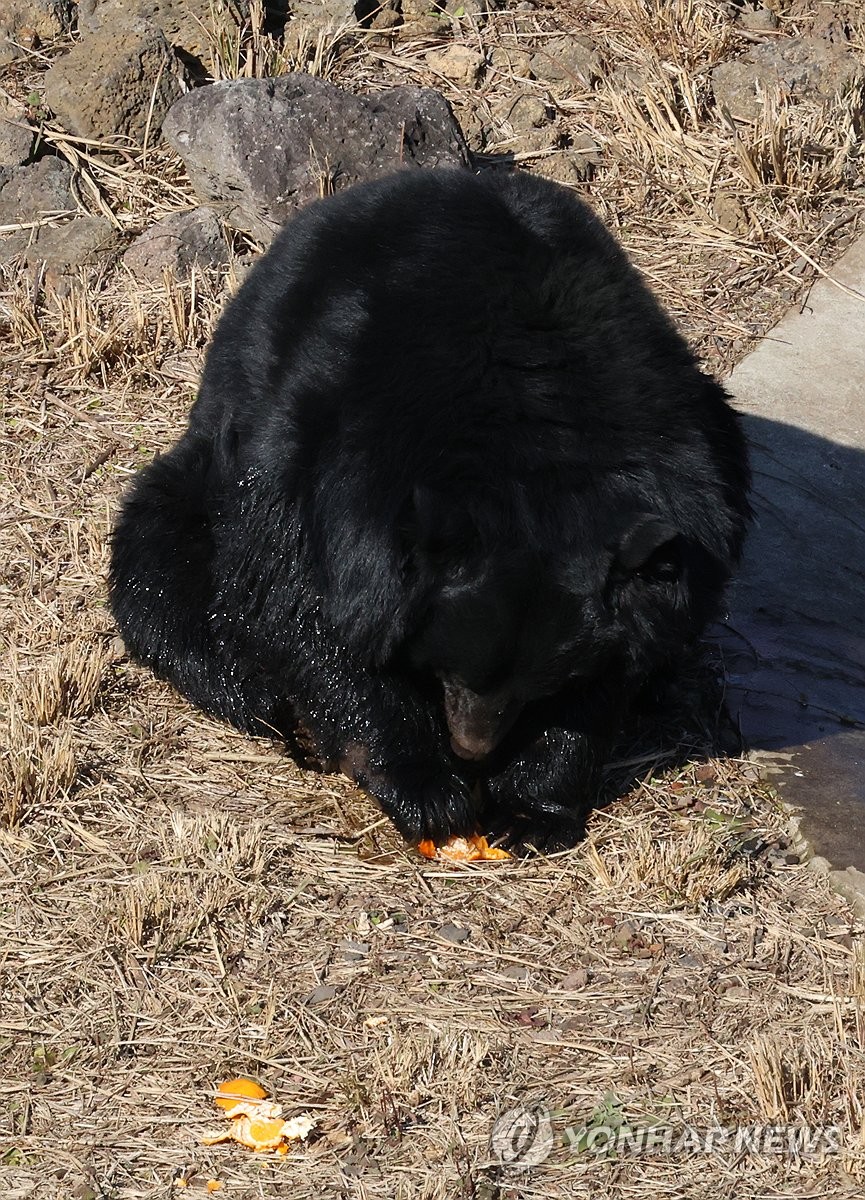 | ▲ 반달곰도 귤 까먹어요 (서귀포=연합뉴스) 백나용 기자 = 13일 오후 제주 서귀포시 성산읍 수산리 제주자연생태공원에서 반달가슴곰이 귤을 까먹고 있다. 지난해 경기 용인 한 민간시설에서 제주로 이주한 반달가슴곰 4마리는 정착에 성공해 이날부터 도민과 관광객에 공개되고 있다. 2024.1.13 dragon.me@yna.co.kr |