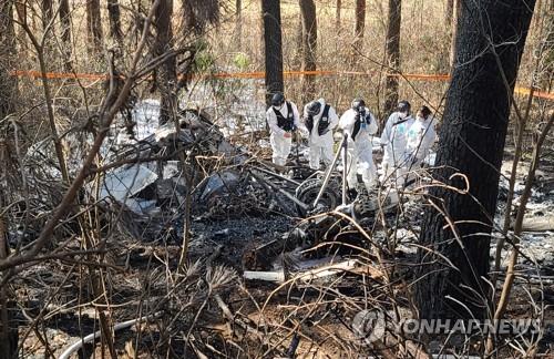 The chopper, an S-58T on lease by the local governments of Yangyang, Sokcho and Goseong, crashed on a hill around 10:50 a.m. while surveying the area against forest fires, officials said.