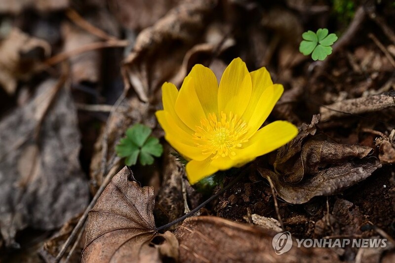 노란 꽃 피워 봄소식 전하는 한라산 '세복수초'