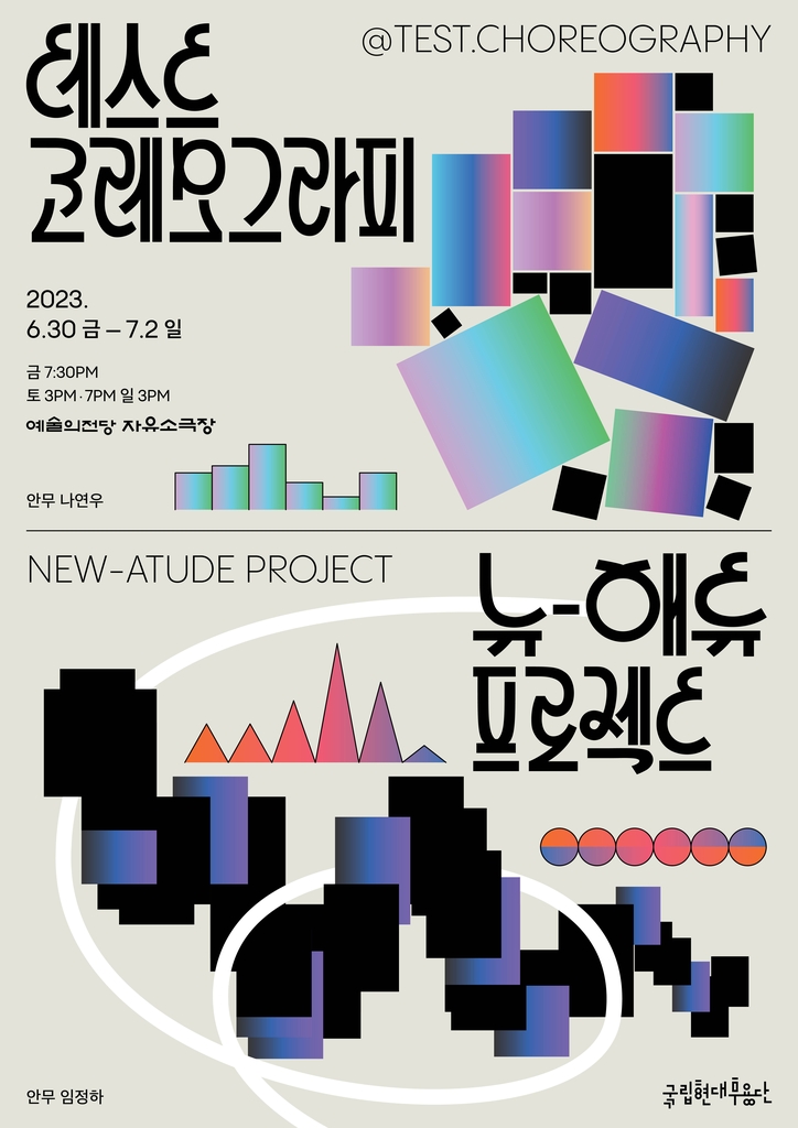 국립현대무용단은 안무공모 프로젝트를 통해 선정된 나연우 안무가의 '테스트코레오그라피'와 임정하 안무가의 '뉴-애튜 프로젝트'를 선보인다.