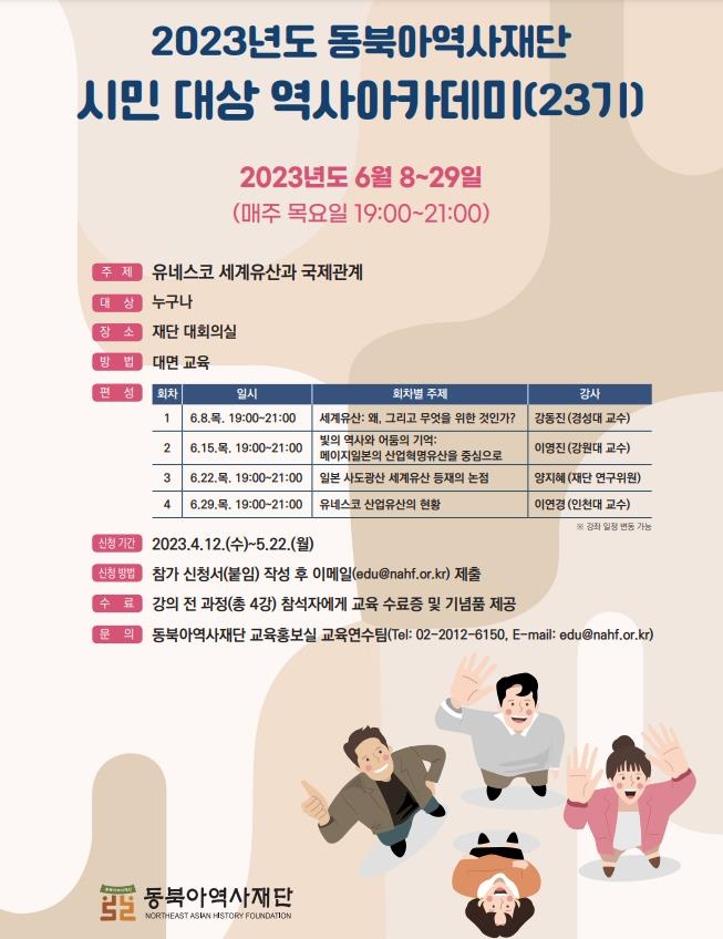 ▲ 동북아역사재단, '유네스코 세계유산과 국제관계' 강연 = 동북아역사재단은 6월 한 달간 매주 목요일에 시민을 대상으로 한 시민 역사 아카데미를 연다.