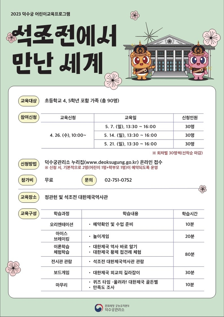 이달 26일 오전 10시부터 덕수궁관리소 누리집(www.deoksugung.go.kr)에서 신청하면 된다.