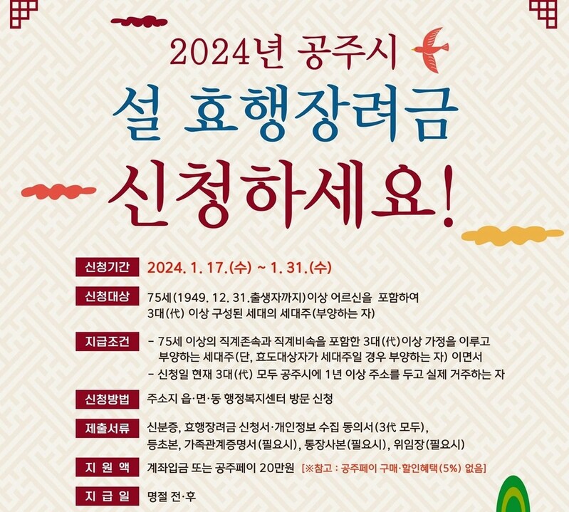 | ▲ 공주시 설 효행장려금 포스터 [공주시 제공. 재판매 및 DB 금지] |